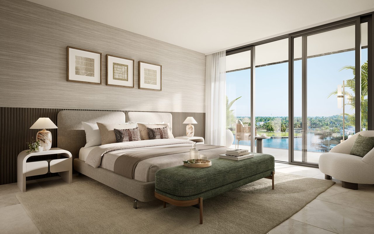 8-story waterfront property featuring 44 exclusive residences located on Indian Creek waterway.